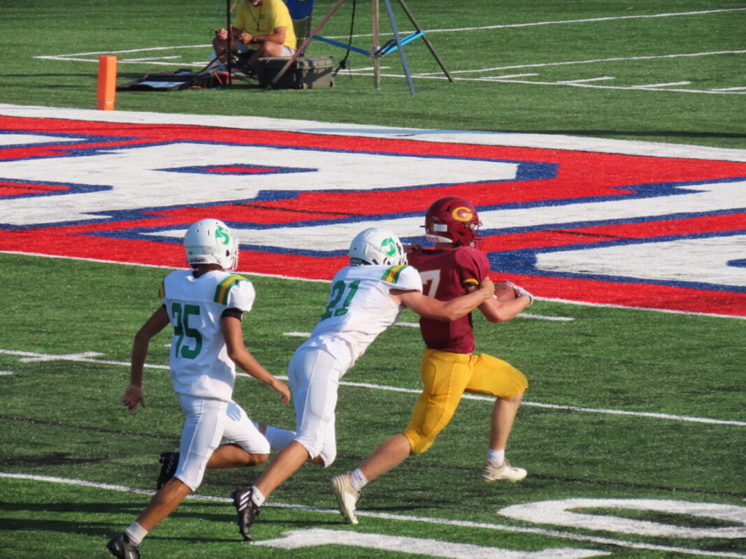 The Green County defense used an NFL-like hit by Koltyn Milby on Lucas Whitt for a short loss to force a punt. Green County would get a 12-yard run from Gage Bell and then a 13-yard catch by Eli Bishop. The drive would end without any points for the Golden Lions. defense regrouped.