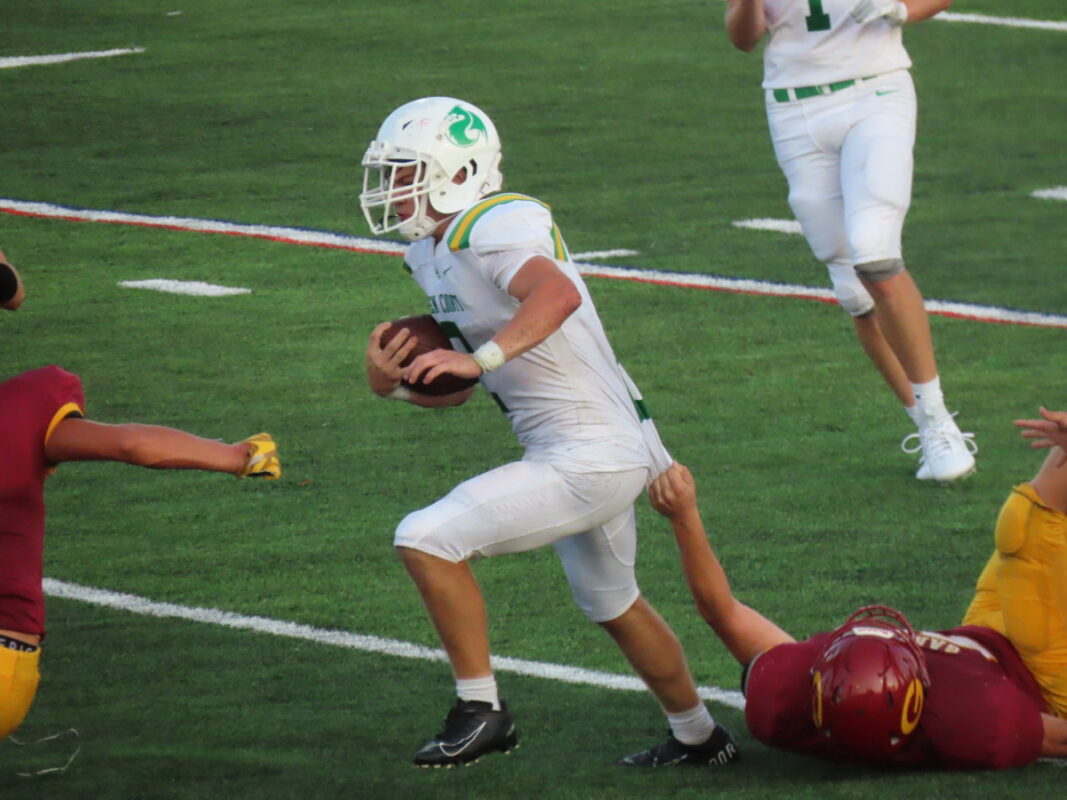 It looked like the Golden Lions had forced a three-and-out, but Green County elected to go for it on fourth and six, and the result would be a 56-yard touchdown run by Bale to give the Dragons a 14-3 lead with 6:49 remaining in the half.