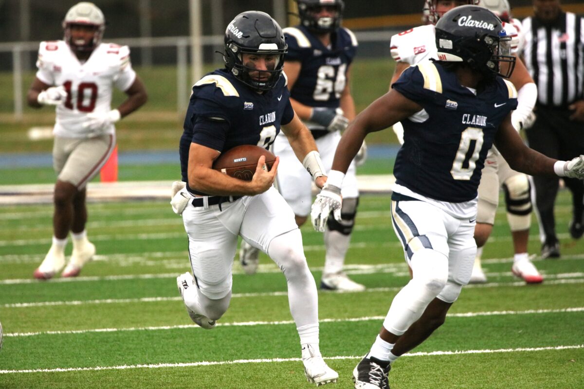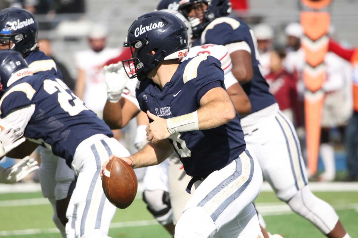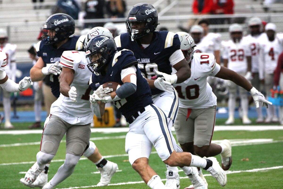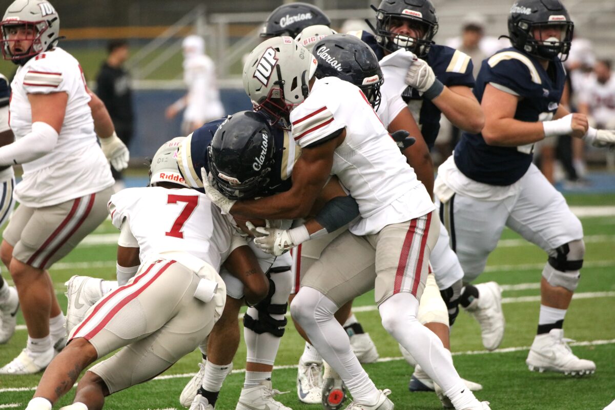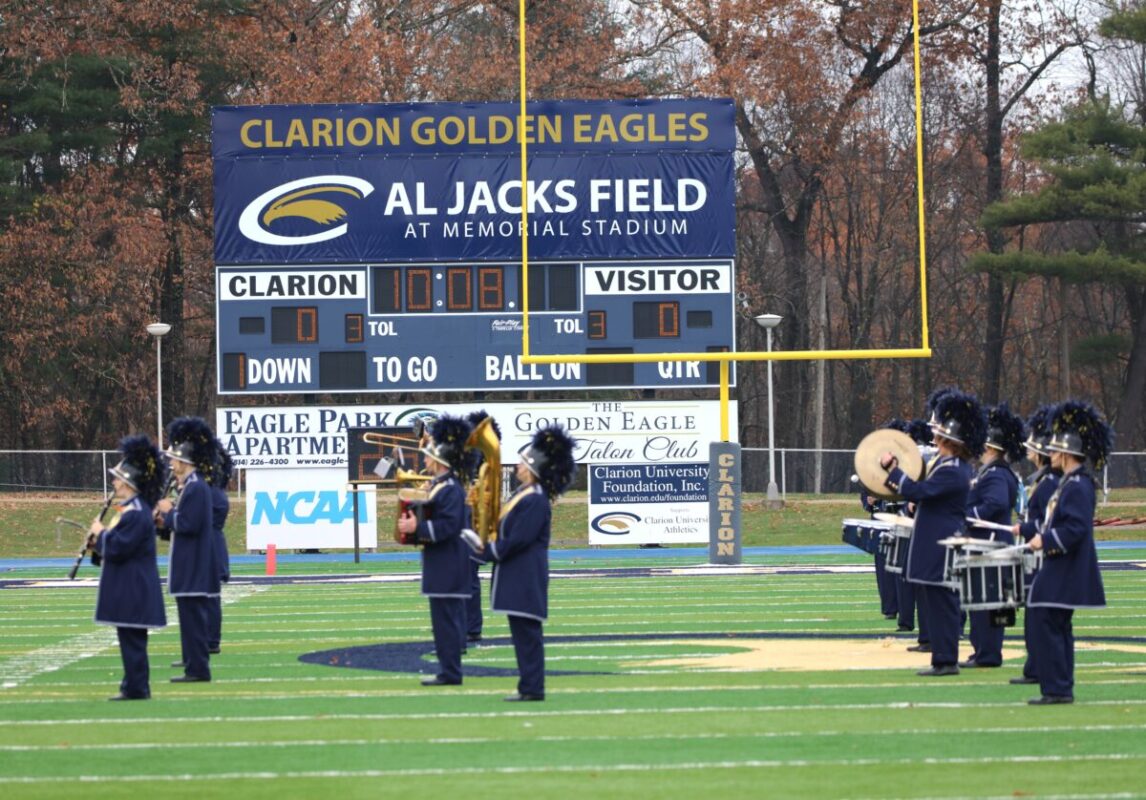 In a home field heartbreaker, the Clarion Golden Eagles (6-4) lose a PSAC west division game against the IUP Crimson Hawks (7-2) late in the 4th. 45-42 (photo gallery)