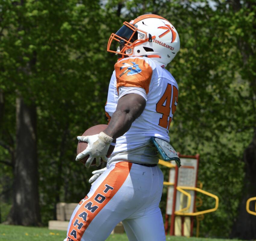 Dodson on a roll with a 1yrd touchdown bringing Tomahawks to a 22-6 lead over the Bolts.