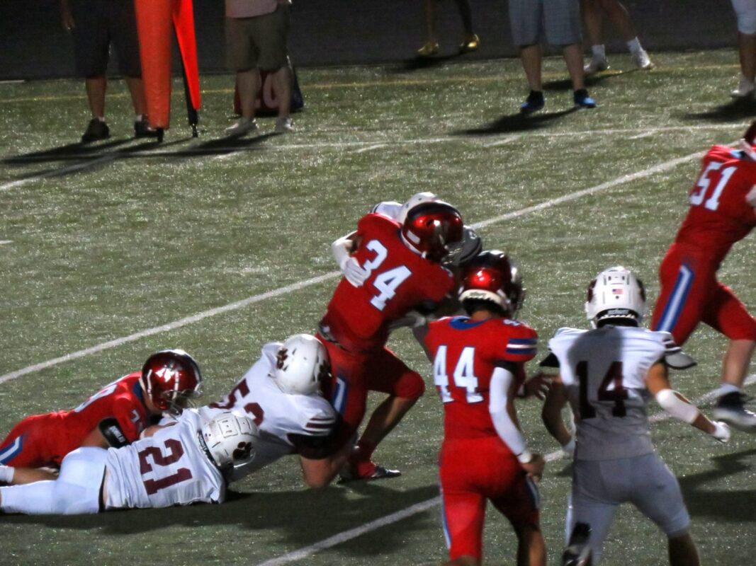 Eli Bohannon would score the first two touchdowns, the first on an 11-yard catch on a nicely thrown ball from Paul Briney. Aiden Hunter had a two-point conversion catch after the first touchdown, then he scored a touchdown on a 9-yard John Riggins-like run.