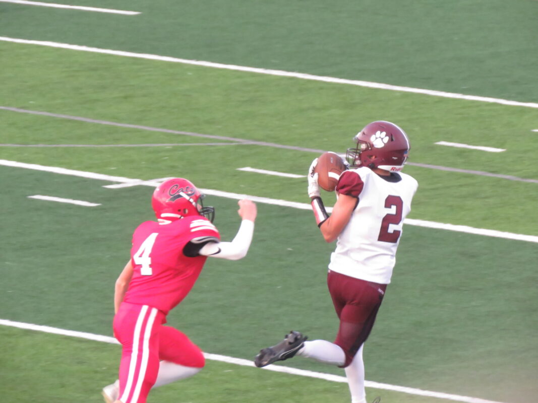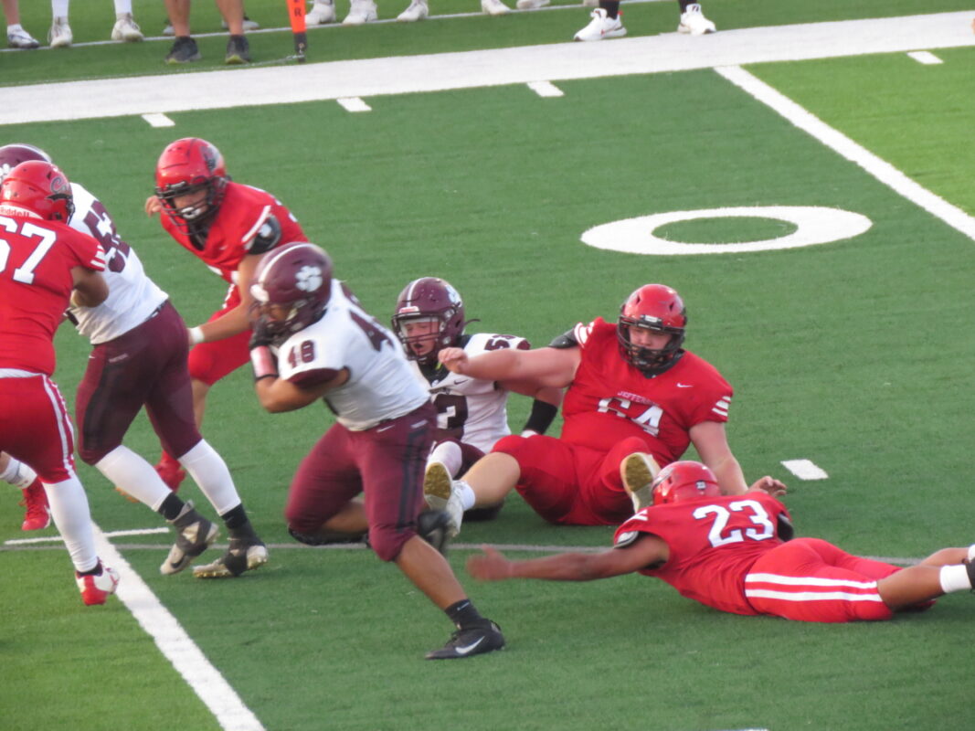 Dillon Shough-Germann got to ball carrier on third and long to force a punt by the Wildcats, with 8;47 left in the game. A Larson 56-yard touchdown run ended and another two-point conversion run from Foor was the last scoring in the game giving us a 56-25 final score.