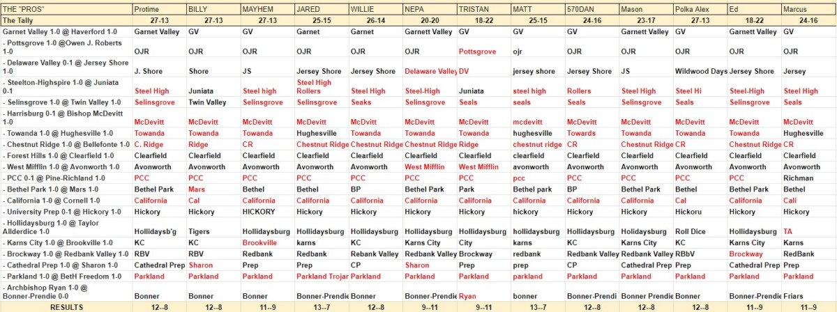As for the Pros, we got us a real sitcheeation as they say in them old wild west films. When the dust finally settled there was a 4 way tied in the corral. Well, go ahead, take a look (if you dare). One note, if we could we’d give Parkland a prize. They did something I don’t think has every happened, they fooled everyone by not winning. On to this weeks pics, scroll down for the next round!