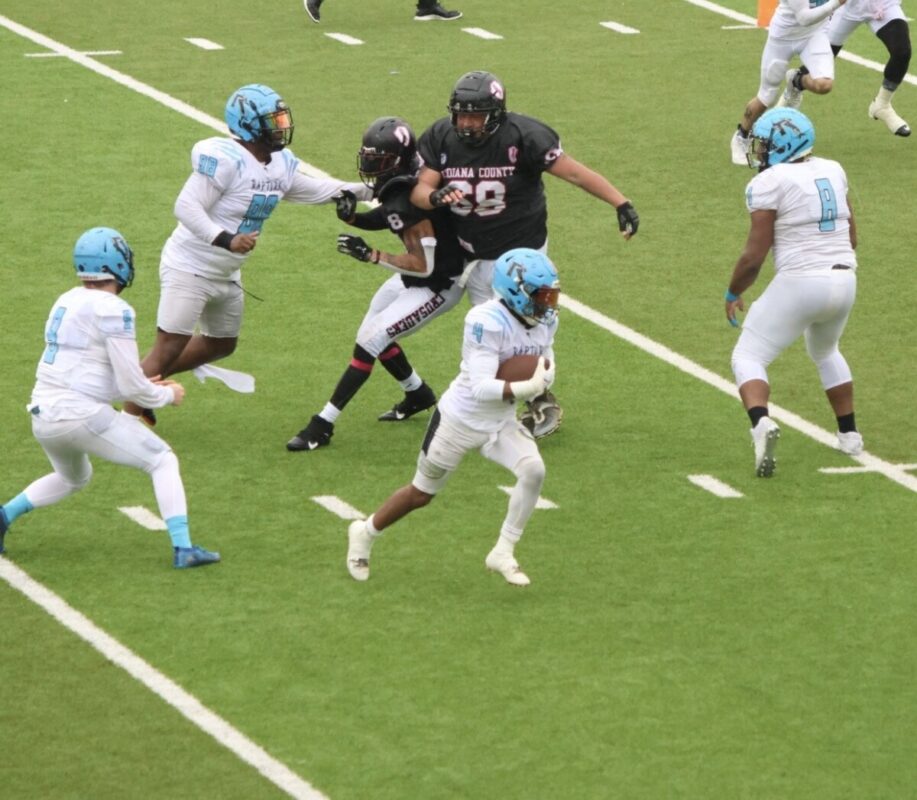 The Berks County Raptors (2-5) came to Indiana today to play the host Indiana County Crusaders (0-6). The Raptors won their first game of the season last week and were hoping to build on that. The sun was out when I got there but started to rain just before the game started and rained on the Crusaders all day. The Raptors offense started slowly but finally got it going by the second half. The Crusaders offense never got started.
