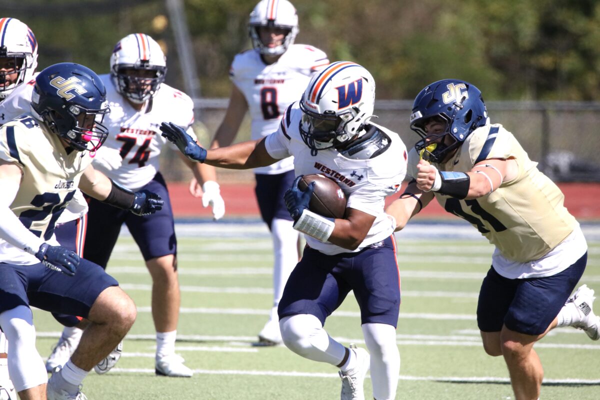 The Western Connecticut Wolves travel to Juniata College in a Landmark Conference matchup to take on the Eagles and dominate 63-15 (photo gallery)