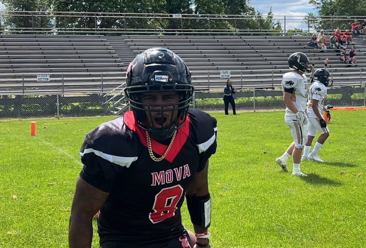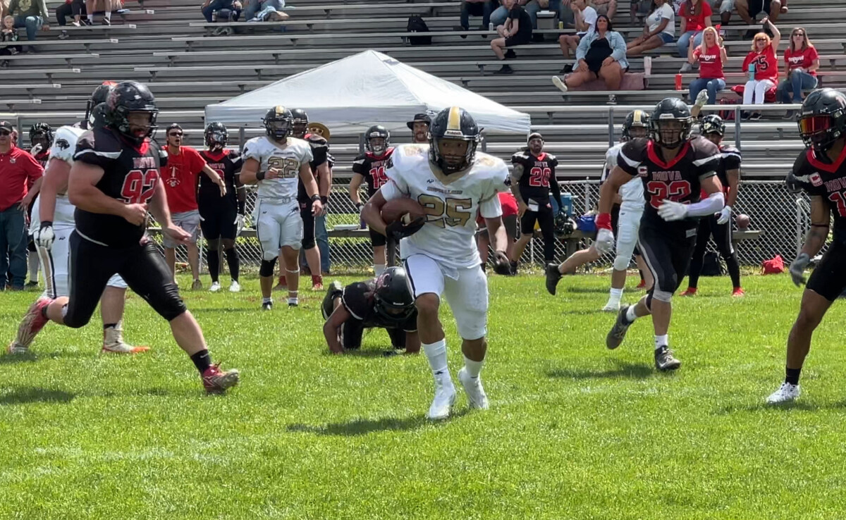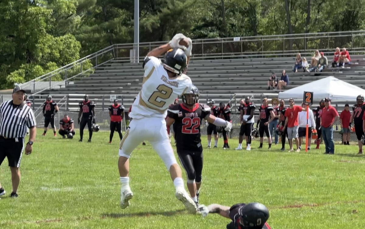 Bedford actually struck first with a 18 yard td pass from Levi Cook to Ian Valente. The duo also hooked up for the two point play to make it 8-0 with just 2 minutes off the board. The scoring came fast and furious in the first quarter. Malik Breon scored on a 5 yard run and the two point play tied the game at 8. The Buffalo offense sputtered and punted the ball to the Viking 7. Greg Medina hit Dane Bright for a 45 yard score after a block in the back put the Vikings on their own 5. Jason Nyhart hauled in the two pointer to make it a 16-8 lead for MoValley. On the very next play Bedford lost the ball and the Vikings recovered on the Buffalo 6. Medina took the ball in himself and the Vikings were off to the races with a 24-6 lead five minutes into the first quarter.