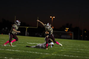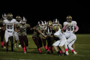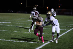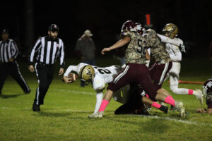 After a series of unfortunate events, Windham saw an injury followed by a fourth down stop that had them facing an uphill battle. The two teams then agreed to switch to a running clock. Waterloo kept it on the ground, and quickly saw a 63-yard touchdown run to the left side extend their lead. With the clock still running, the Windham Bombers put things together in the fourth, moving the ball to the endzone. Including a fumbled rushing attempt from the ten yard line was recovered and falling into the endzone to break the goose egg. The PAT attempt was stopped. With the quickly moving clock only stopping for an injury and a timeout.