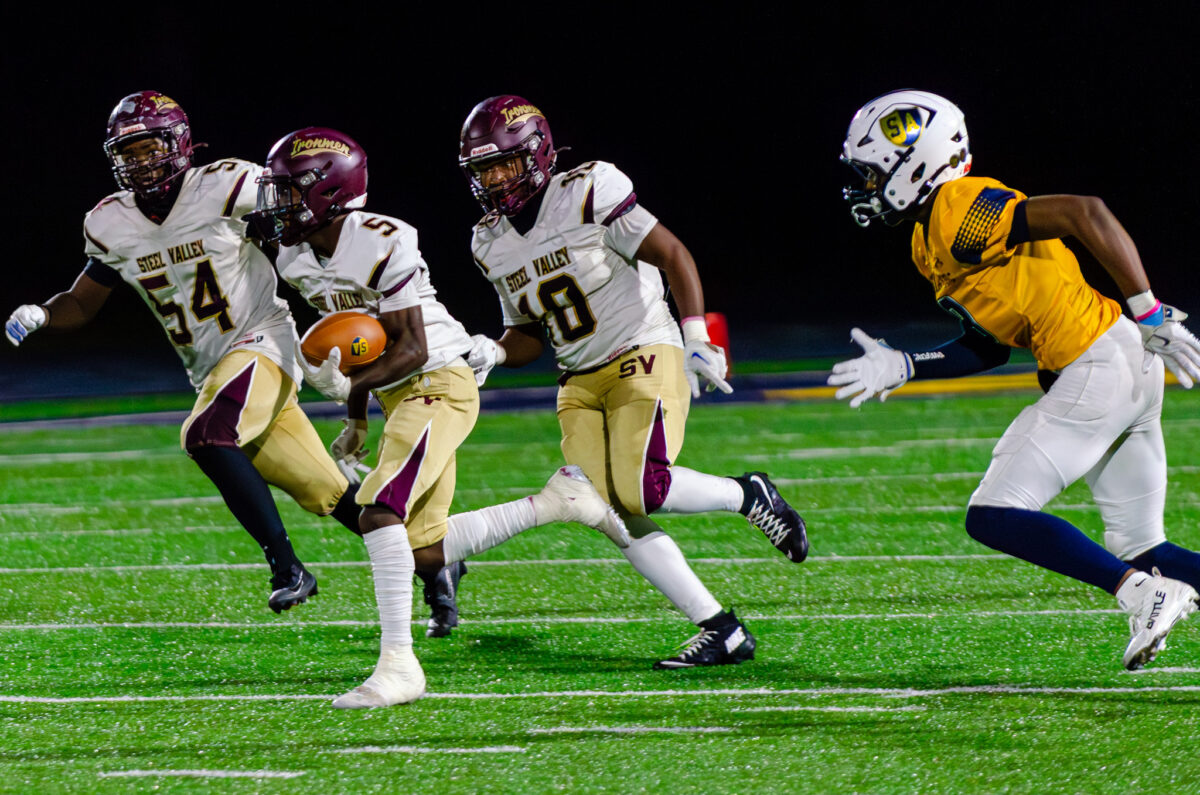 After forcing a punt, the Ironmen took over at the South Allegheny 11-yard line and capitalized once again with another touchdown from Barksdale, this time from 19 yards out. Later in the second quarter, Ashad Dye intercepted a pass at the Gladiators’ 10-yard line and returned it 90 yards for a pick-six, extending Steel Valley’s lead.