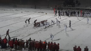 There couldn’t have been more drama on a snowy night in Clarion where the chilly winter-like air was a witness to a fantastic football game that had fans on the edge of their seats right up to the final few seconds. By the end of the PIAA single A quarter-final game, Redbank Valley was bruised and battered from a very physical football team from Loysburg. But the Bulldogs had one more play in them. Northern Bedford had a 4th down and two at Redbank’s 6-yard line with less than a minute to play. That is when the Bulldog defense and Zeldon Fisher in particular made the stop of the year when they stuffed a Black Panther running play for a yard loss to ice the game and give Redbank the hard-earned 21-14 come from behind win.