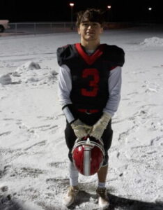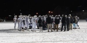 But on this frigid night the spirits of football eventually found favor with Redbank Valley. On their second possession of the third quarter, Gunner Mangiantini, filling in for a banged-up Bryson Bain hit Chris Marshall for a 31-yard TD toss to tie the game at 14. Then, on the first play of the last quarter, Boo Shreckengost, the 5’3” 135 lb. senior broke through the line, shed a couple of tackles, spun away from another, and outran everyone else for what proved to be the game-winning score.