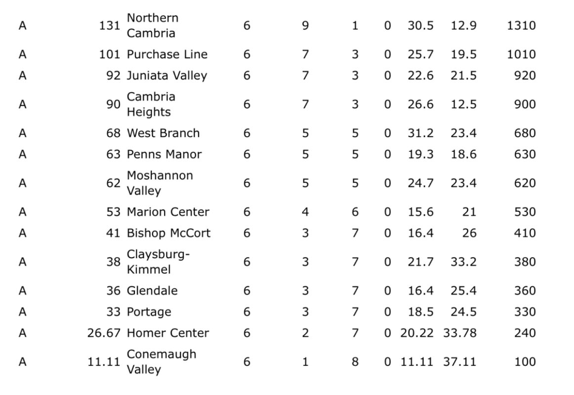 Northern Cambria (8-1) at Cambria Heights (7-2)