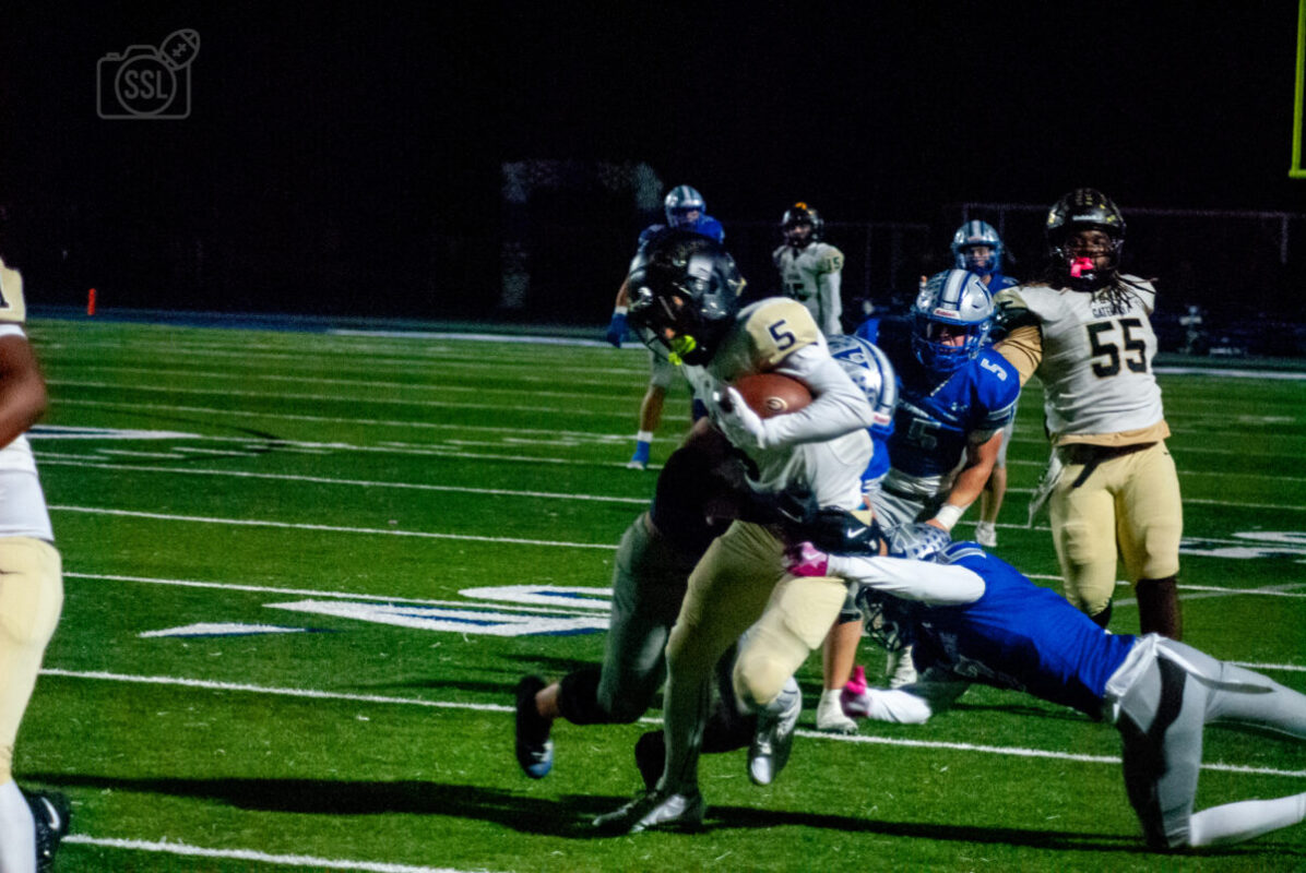 Hempfield rallied in the fourth quarter to secure a 42-38 win over Gateway in a high-scoring matchup Friday Night. Hempfield stormed out of the gates with a pick six as Jack Kopas jumped a route and took it 71 yards to give Hempfield the early lead. Gateway came roaring back with a statement run of 78 yards, capped off with a touchdown by Gateway’s Shawn Moorefield to tie the game at seven a piece. It didn’t take long for Moorefield to find the endzone again, this time from 30 yards out to give gateway a seven point lead. Gateway would then recover a surprise onside kick that would lead to a field goal, giving them a 17-7 lead with just a minute to go in the first half. QB Dominic Detruf did not need a full minute however, completing a 42 yard strike to Lucas Simmons to close out the first half only down by 3 points. The second half start was not what they had hoped for however, losing a fumble and having Gateway DL Roberson Louis-Jeune take it 50 yards for the scoop and score. Hempfield and Gateway would then enter a battle of back and forth scoring for the remainder of the fourth quarter until Hempfield broke the pattern when Detruf found Kopas for a touchdown on back to back drives to reclaim the lead, 35-31, for the first time since it was 7-0 early in the first. Gateway would answer right back as Moorefield found the endzone one last time to put Gateway up 38-35 with a shad over four minutes remaining in the game. Once again Detruf and company shook off the nerves and marched down the field, JM Landa punched in the game winner with 38 seconds left from 4 yards out, securing a hard fought and thrilling, comeback win for the Spartans of Hempfield.