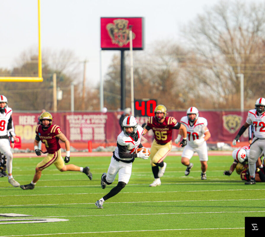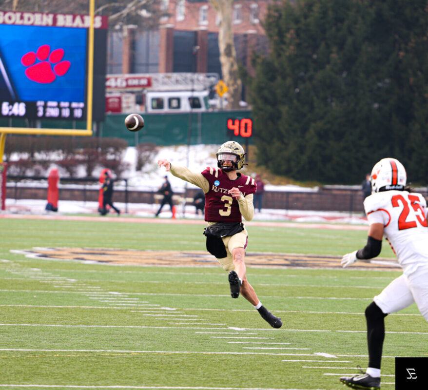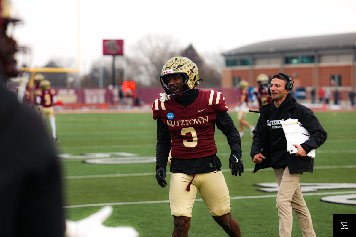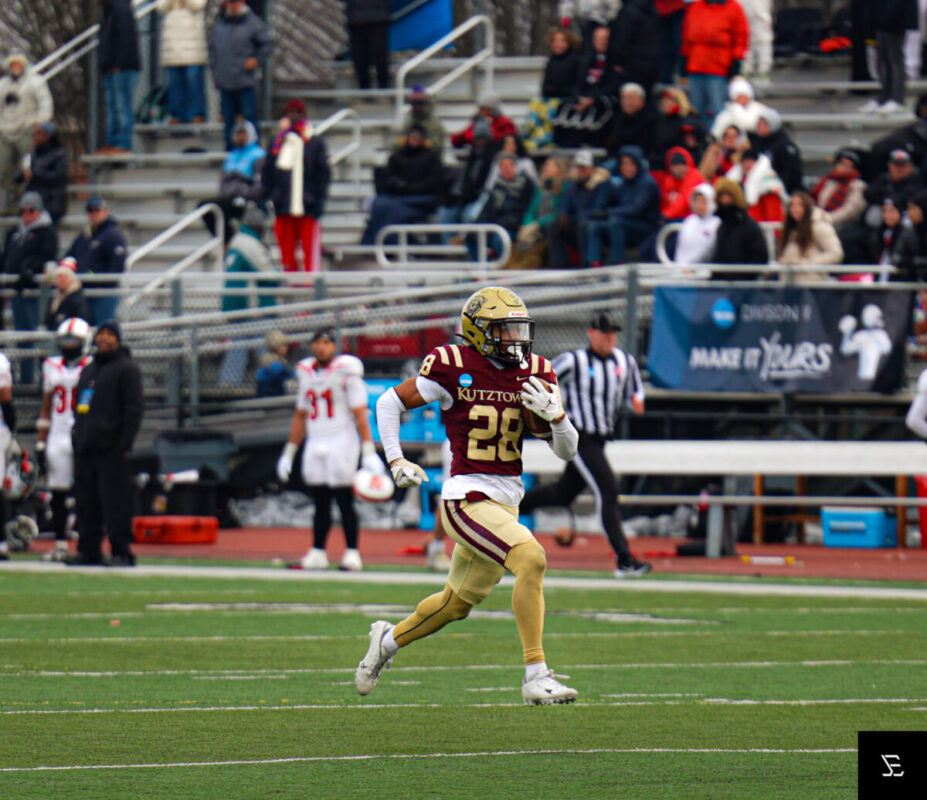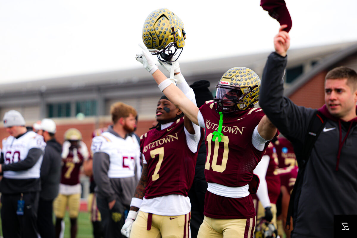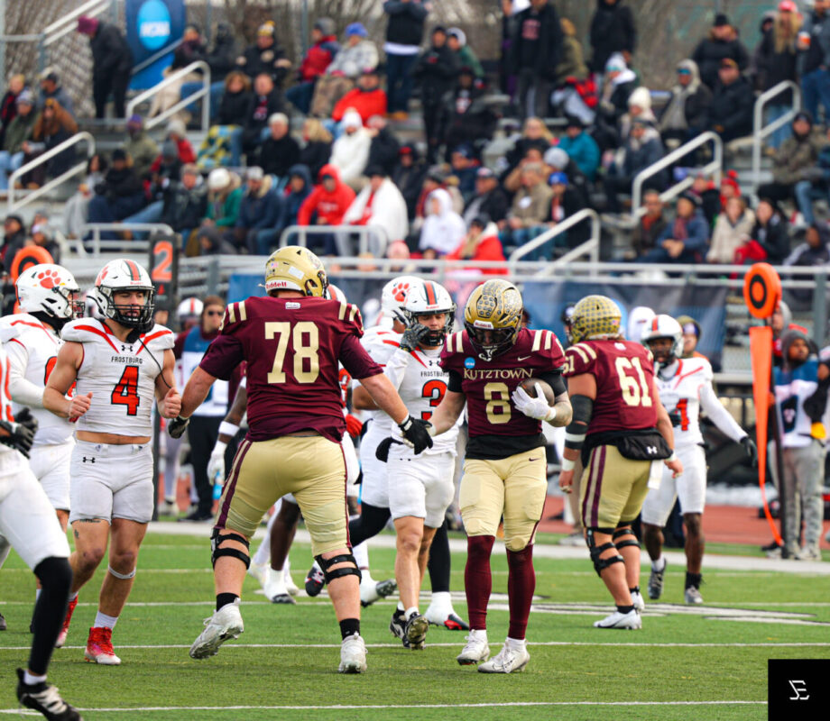 Kutztown continues their undefeated season with a 51-29 over #24 ranked Frostburg State in the Division 2 Quarterfinals. Kutztown has been on a tear so far in the playoffs as this is the Golden Bears 3rd consecutive 50+ point game they’ve put up. In the first half both teams had been going at for the first 2 drives, trading touchdowns and keeping the game going back and forth, Kutztown would stay strong and hold the lead though after a blocked extra point on the first touchdown for Frostburg State. Kutztown would go on to score 2 more touchdowns in the first half putting them up 28-13, and looking as if they were going to run away with the game, but a last ditch effort on a bobbled catch in the end zone by Amirr Coles put the Bobcats within a one possession game.