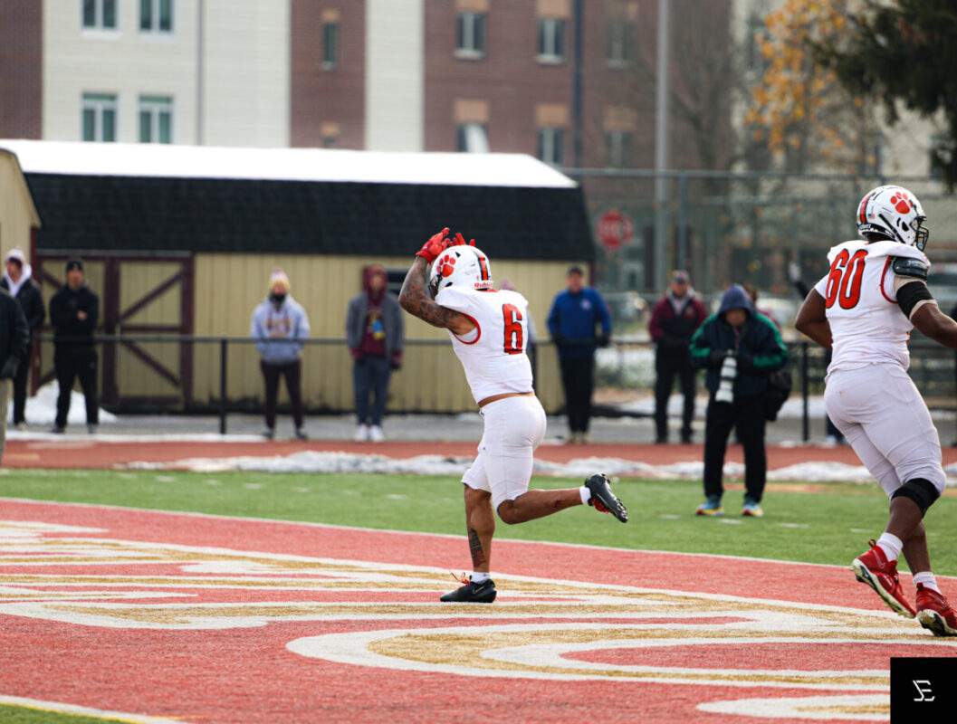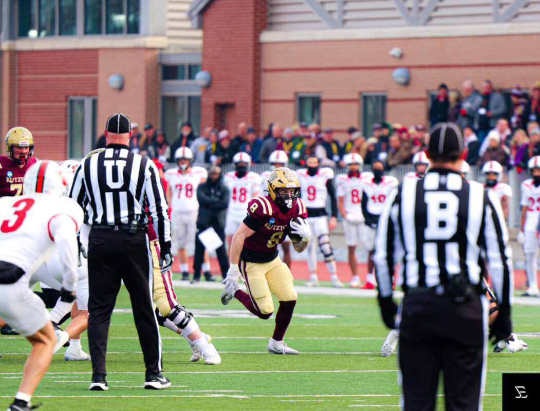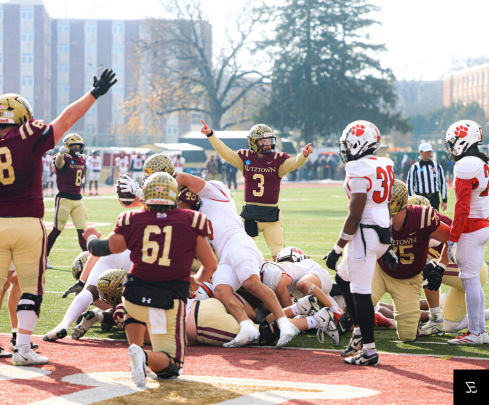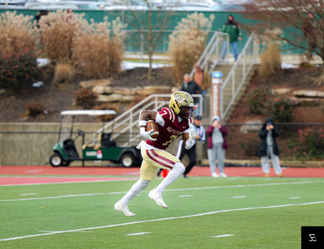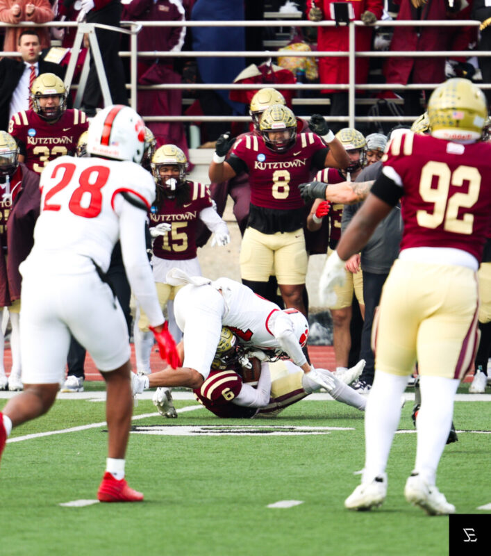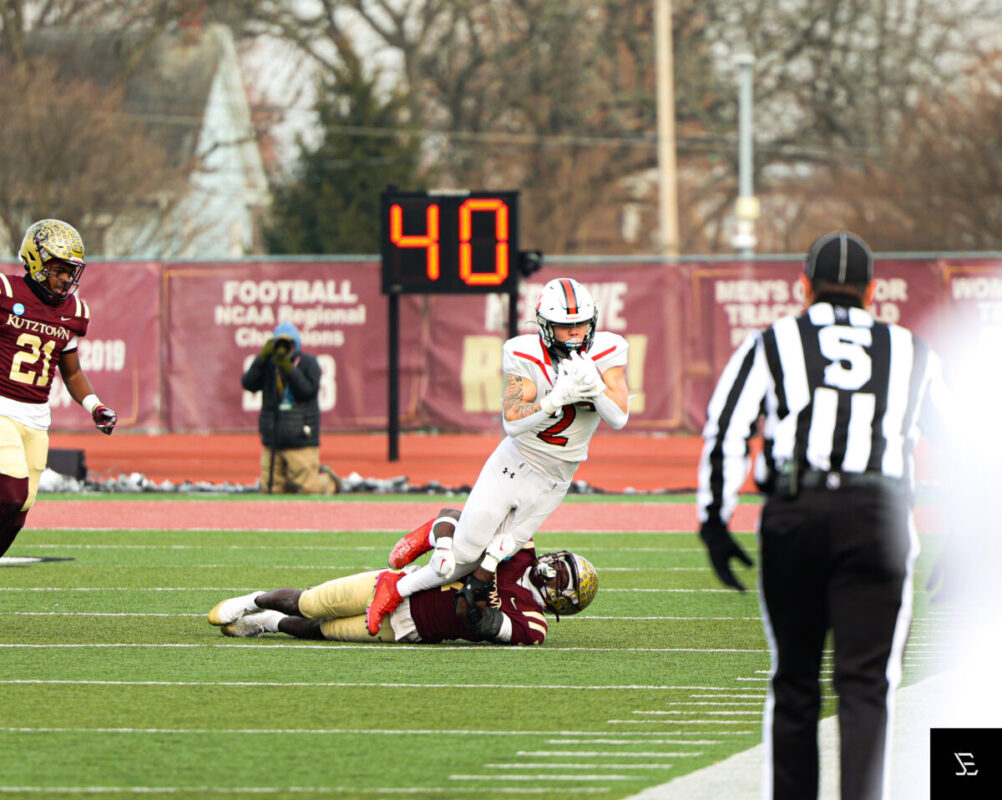Kutztown continues their undefeated season with a 51-29 over #24 ranked Frostburg State in the Division 2 Quarterfinals. Kutztown has been on a tear so far in the playoffs as this is the Golden Bears 3rd consecutive 50+ point game they’ve put up. In the first half both teams had been going at for the first 2 drives, trading touchdowns and keeping the game going back and forth, Kutztown would stay strong and hold the lead though after a blocked extra point on the first touchdown for Frostburg State. Kutztown would go on to score 2 more touchdowns in the first half putting them up 28-13, and looking as if they were going to run away with the game, but a last ditch effort on a bobbled catch in the end zone by Amirr Coles put the Bobcats within a one possession game.