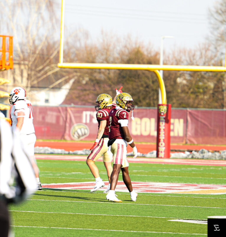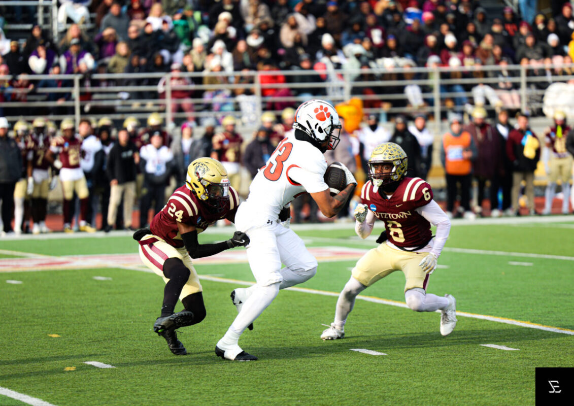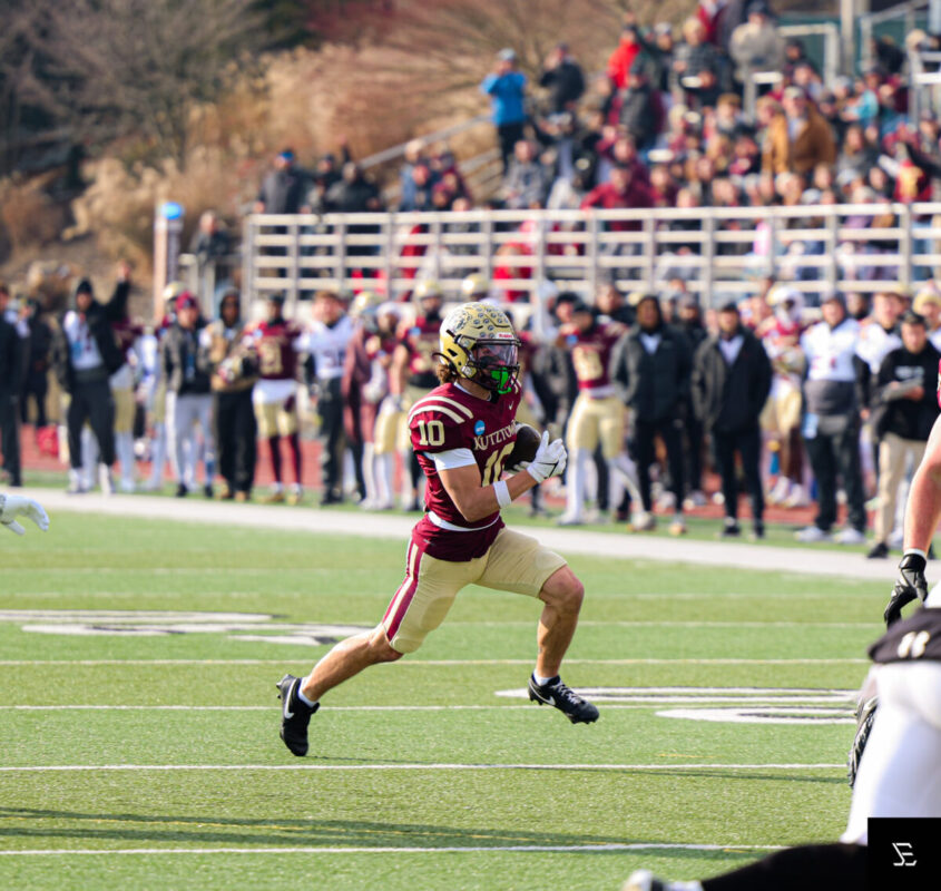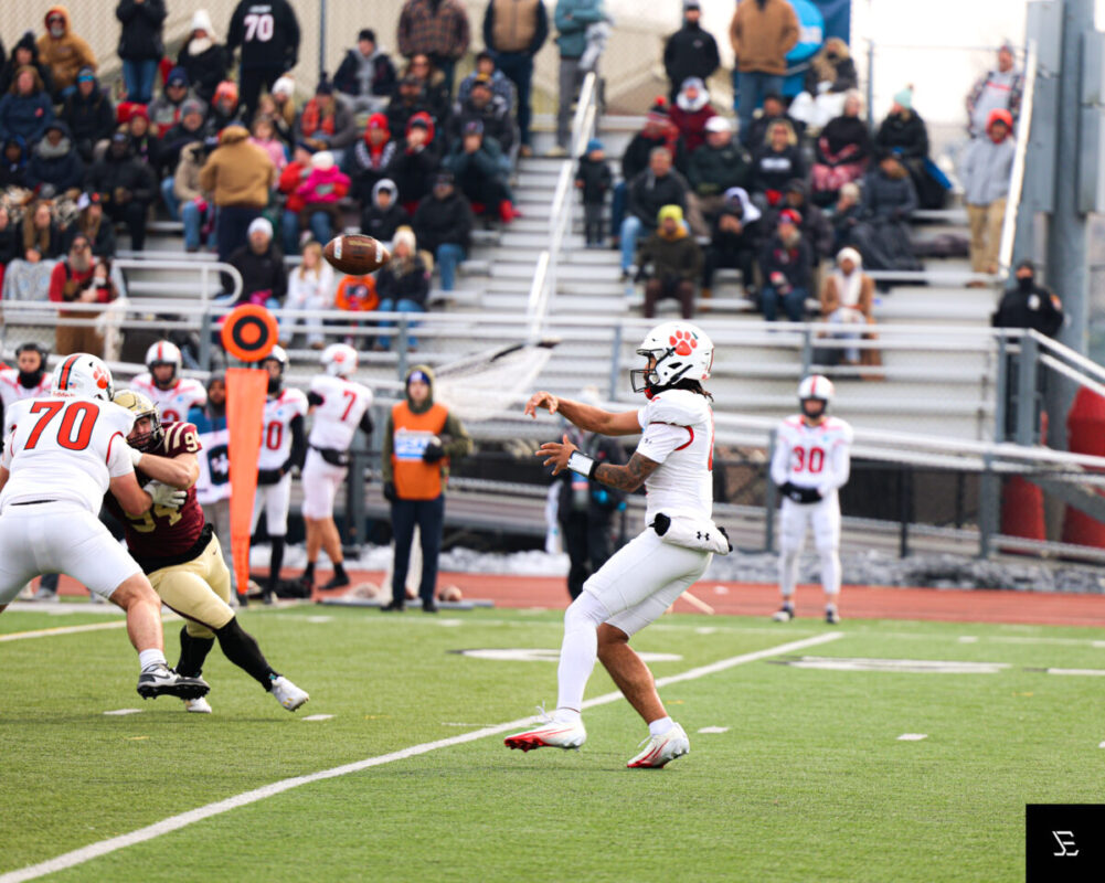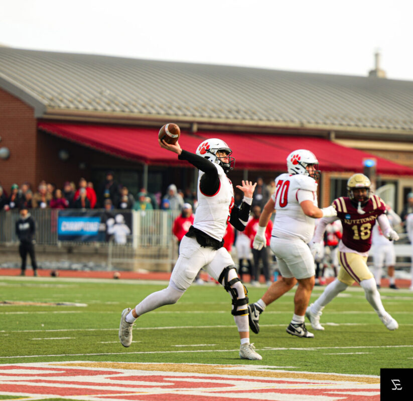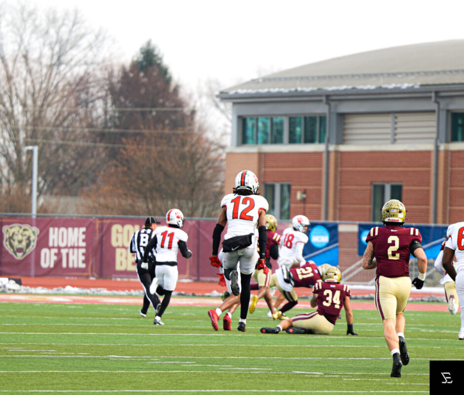 Kutztown continues their undefeated season with a 51-29 over #24 ranked Frostburg State in the Division 2 Quarterfinals. Kutztown has been on a tear so far in the playoffs as this is the Golden Bears 3rd consecutive 50+ point game they’ve put up. In the first half both teams had been going at for the first 2 drives, trading touchdowns and keeping the game going back and forth, Kutztown would stay strong and hold the lead though after a blocked extra point on the first touchdown for Frostburg State. Kutztown would go on to score 2 more touchdowns in the first half putting them up 28-13, and looking as if they were going to run away with the game, but a last ditch effort on a bobbled catch in the end zone by Amirr Coles put the Bobcats within a one possession game.