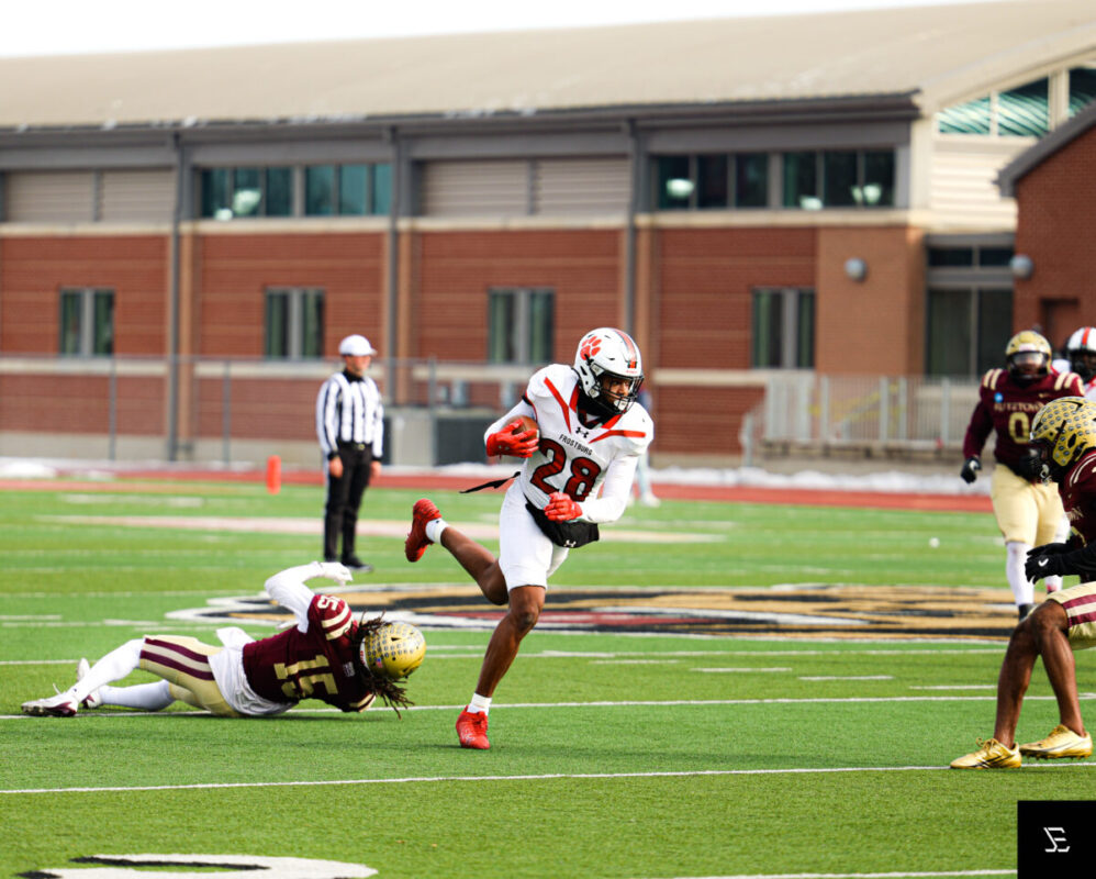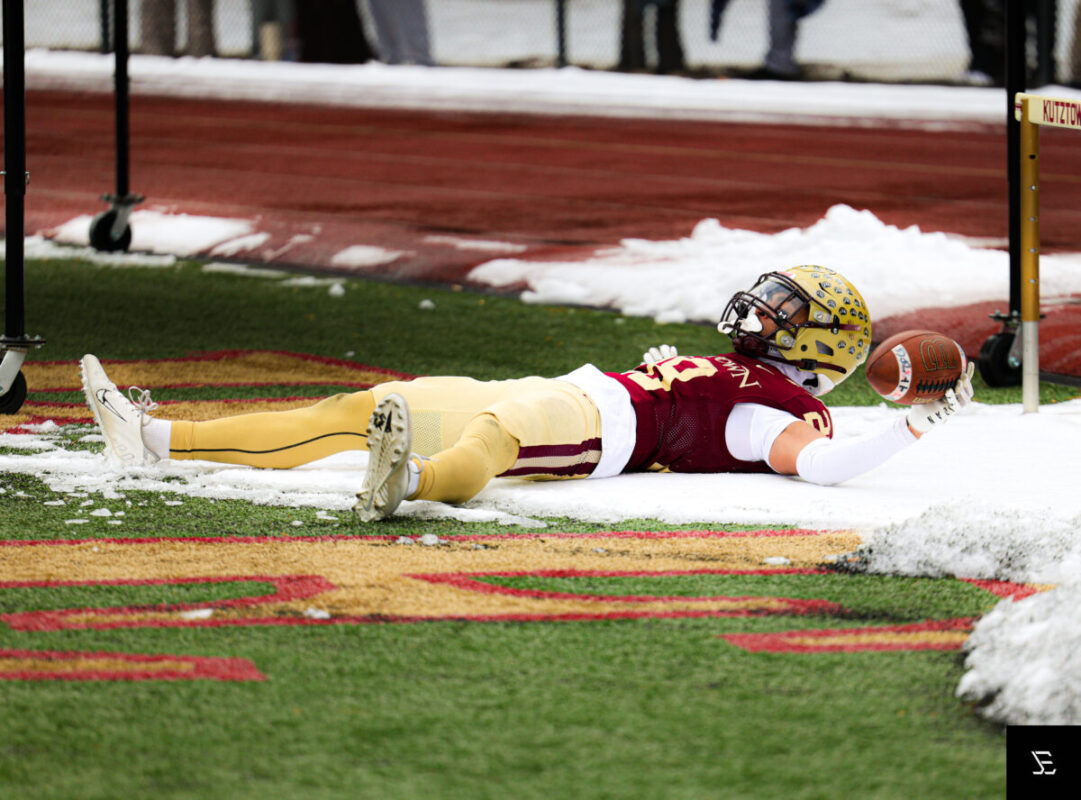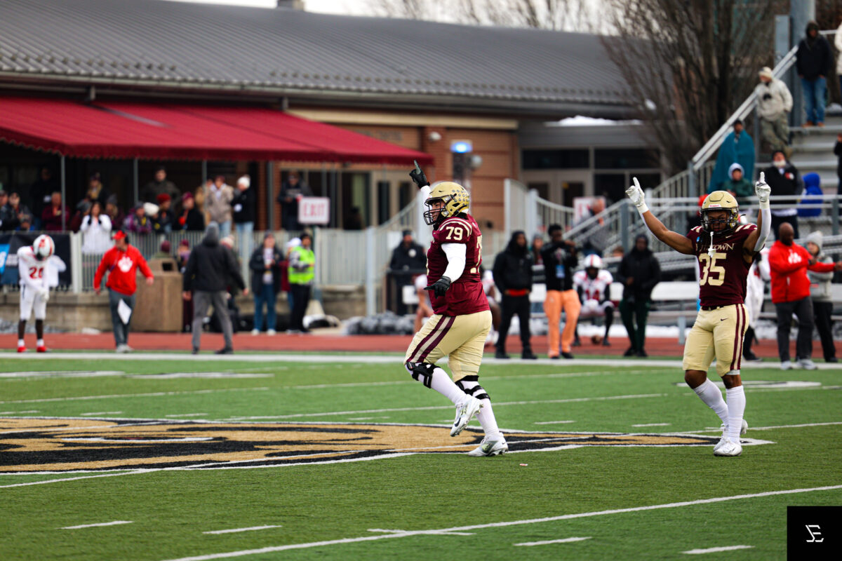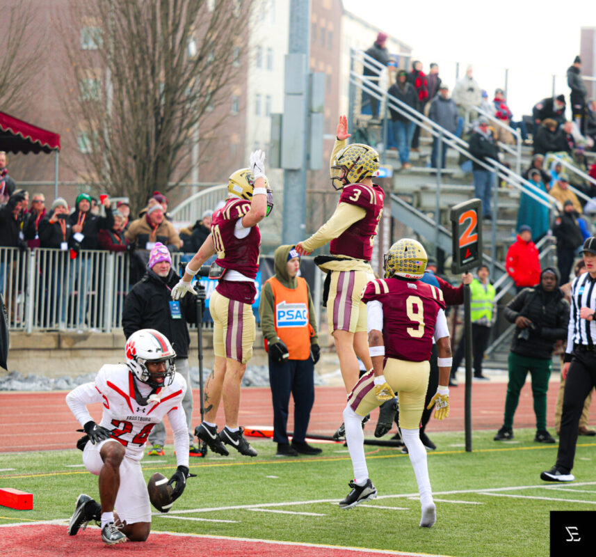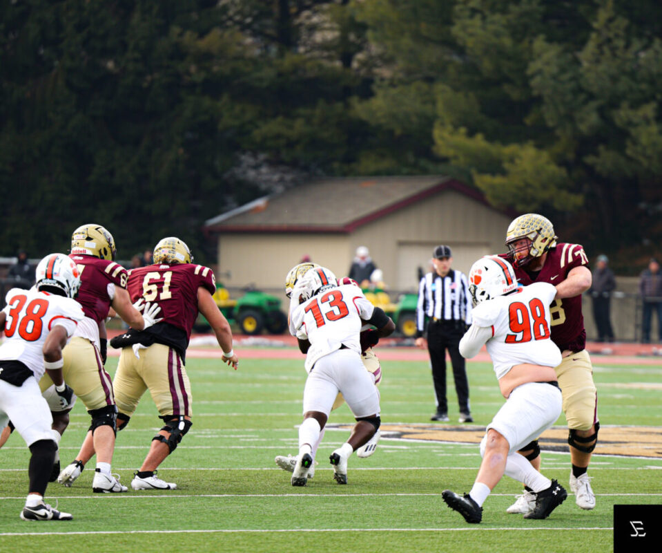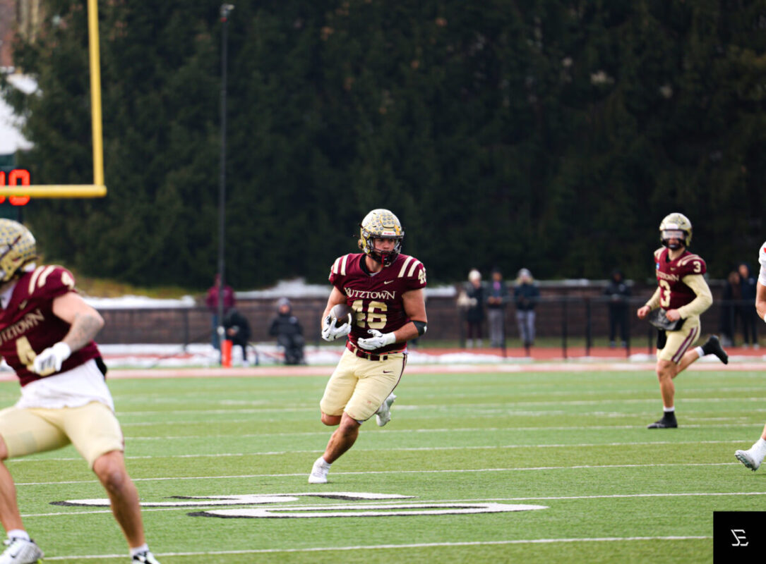 Kutztown continues their undefeated season with a 51-29 over #24 ranked Frostburg State in the Division 2 Quarterfinals. Kutztown has been on a tear so far in the playoffs as this is the Golden Bears 3rd consecutive 50+ point game they’ve put up. In the first half both teams had been going at for the first 2 drives, trading touchdowns and keeping the game going back and forth, Kutztown would stay strong and hold the lead though after a blocked extra point on the first touchdown for Frostburg State. Kutztown would go on to score 2 more touchdowns in the first half putting them up 28-13, and looking as if they were going to run away with the game, but a last ditch effort on a bobbled catch in the end zone by Amirr Coles put the Bobcats within a one possession game.