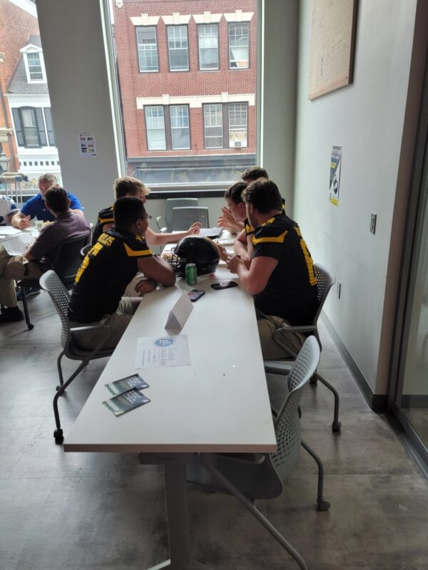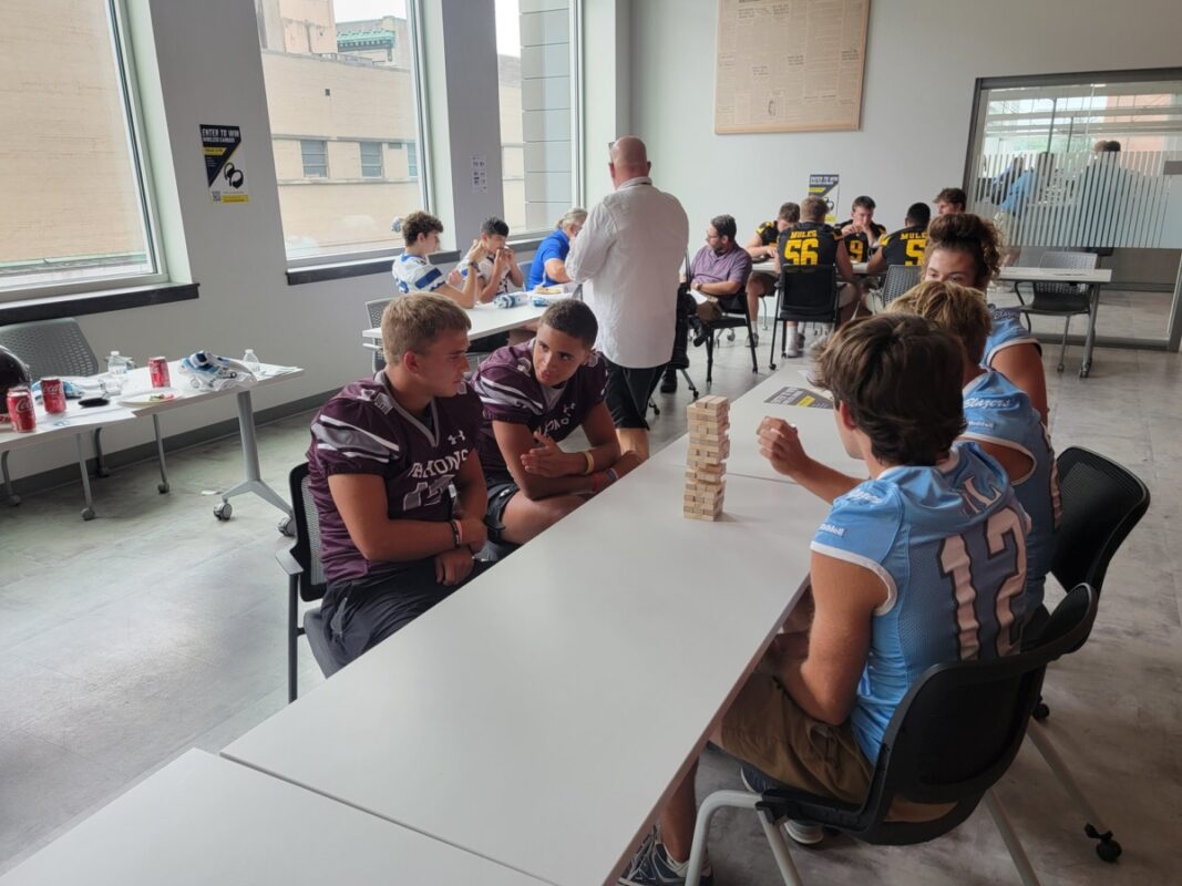 Coaches and players were treated to plenty of food and games during the day. Sandwiches, chips, cookies and drinks were on the menu. Pinball, Cornhole, shadow boxing as well as some video games were a popular choice. The most competitive event was a nearly a half-hour Jenga battle between Fleetwood and Daniel Boone, eventually one by Fleetwood.
