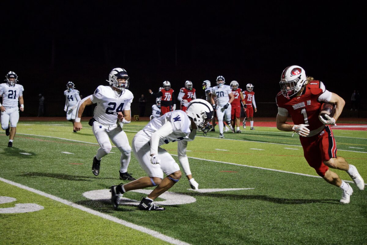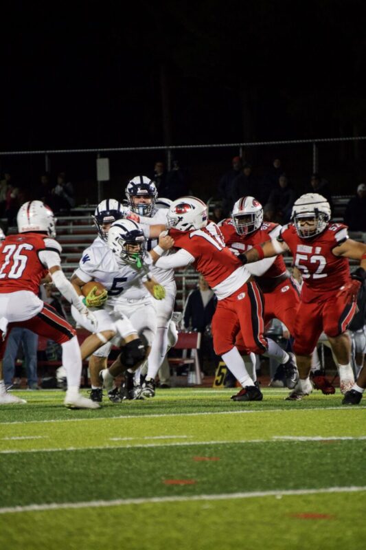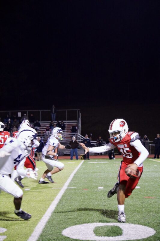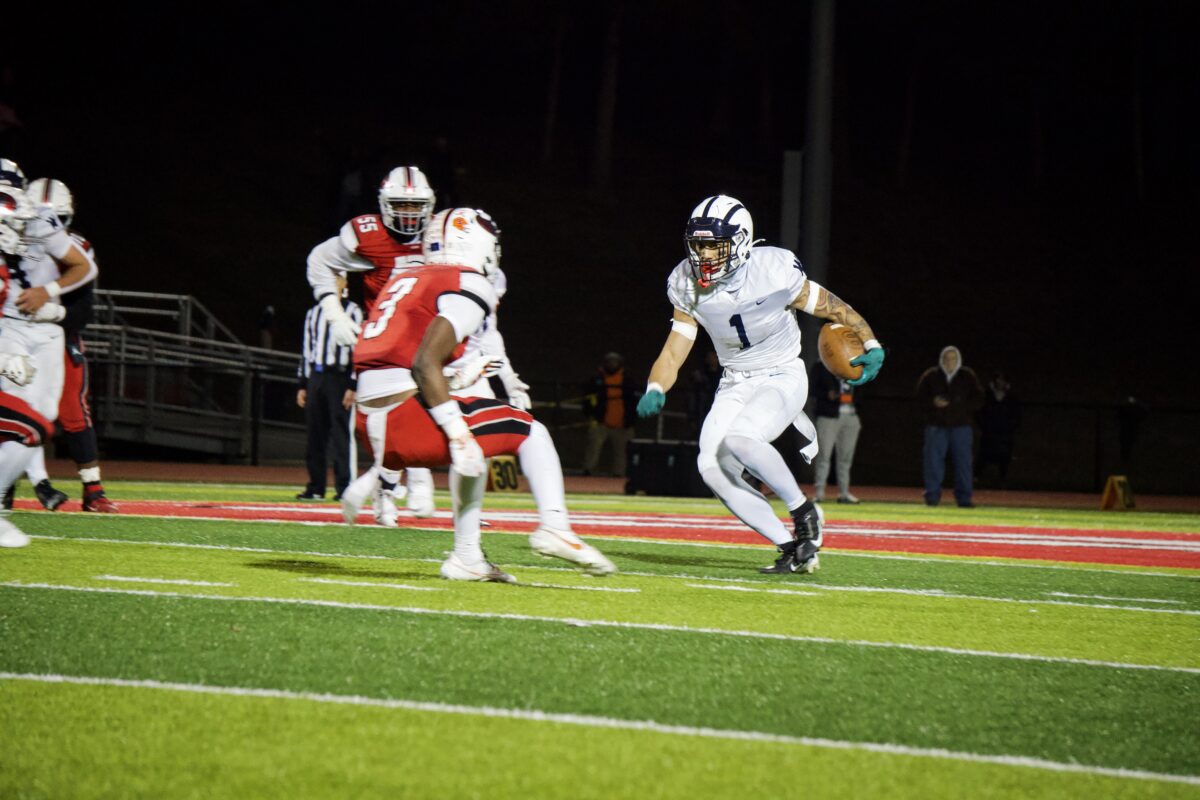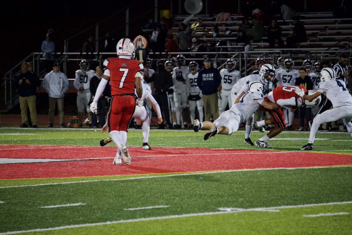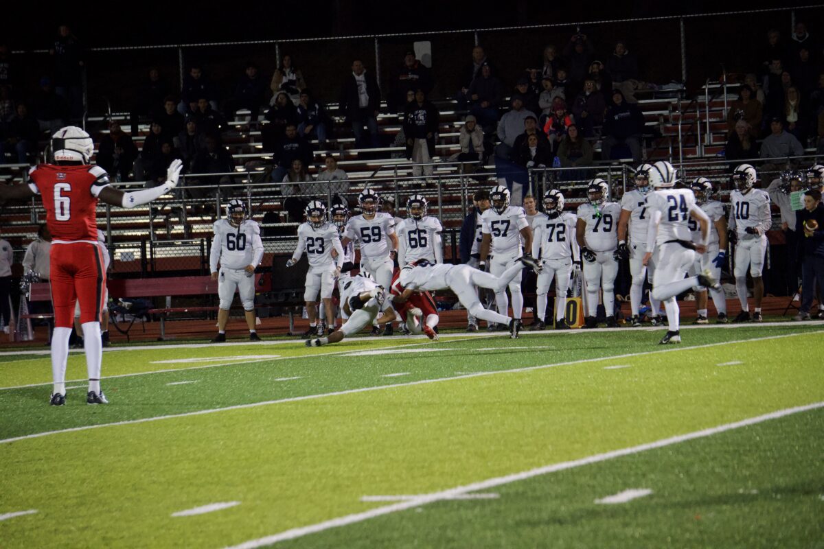 Torin Evans seemed to have all night to find a receiver to win the game. Trailing 35-31 Evans seemed to scramble endlessly, looking for what is probably the most historic win in Susquehanna Township football history. Eventually he found the guy who made play after play all night, Josh Nengite, who highpointed the pass and came down in the back of the endzone to send Township to the next round of the playoffs with a 37-35 win.