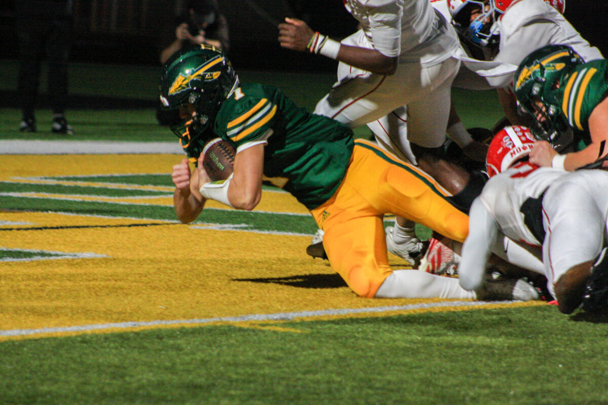 Penn-Trafford Senior Nate Desmond lands in the endzone for a 1-yard touchdown late in the first quarter on Nov. 7 against Moon.