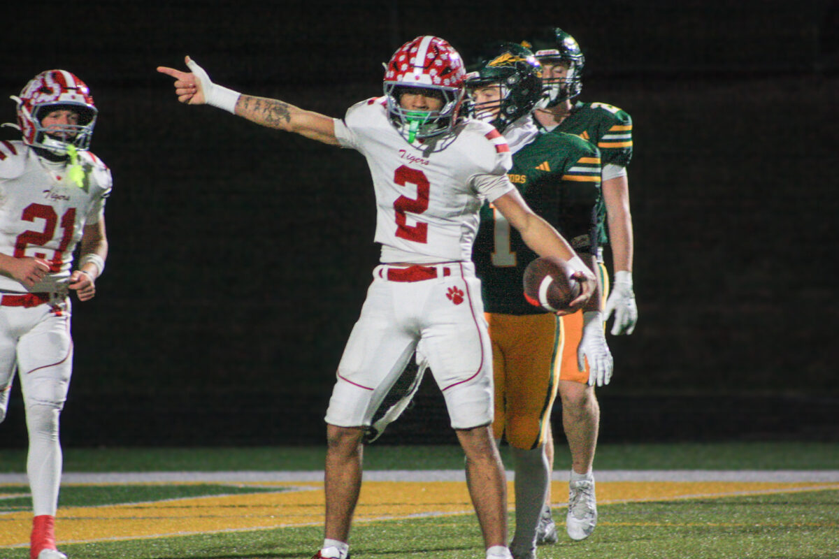 Then came a pass interference call, pushing the Tigers to the opposite 36-yard line. The ruling that Cross was down before the ball came loose allowed Moon to keep their momentum rolling. Vandetti’s catch with 3:23 left in the fourth raised the Tigers up 20-13.
