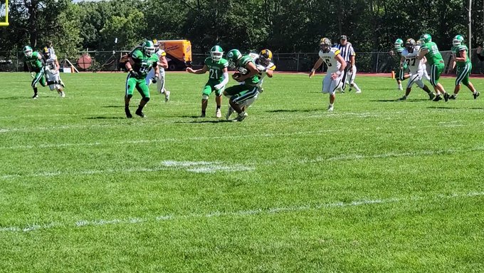 Bollinger, played at quarterback in the second half and threw a 15 yard score to Eli Zimmerman with 2:34 left in the third quarter to make it 41-0 and put the game into the running clock mode.