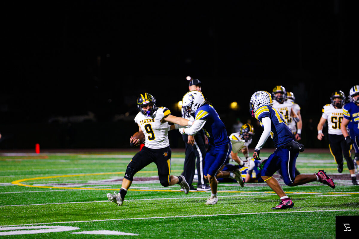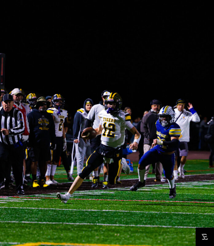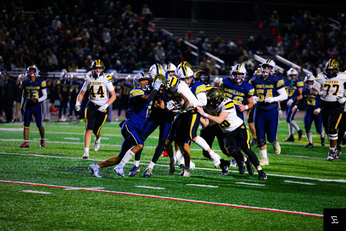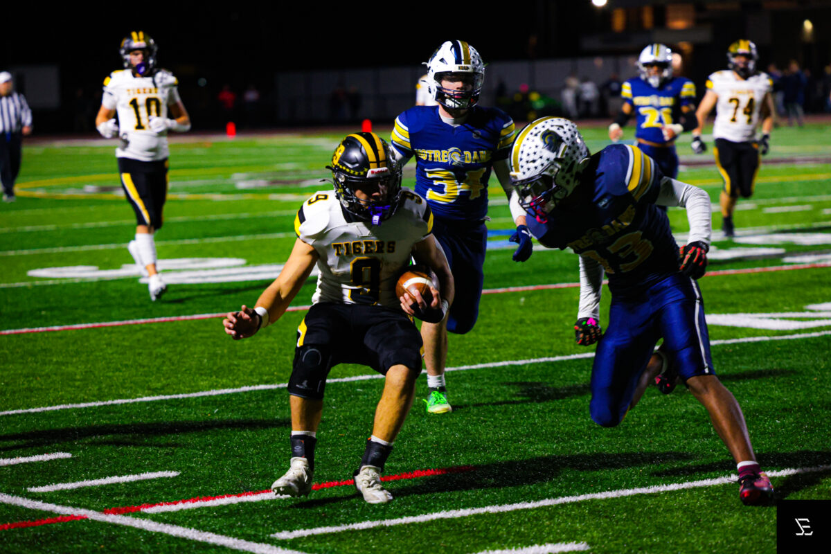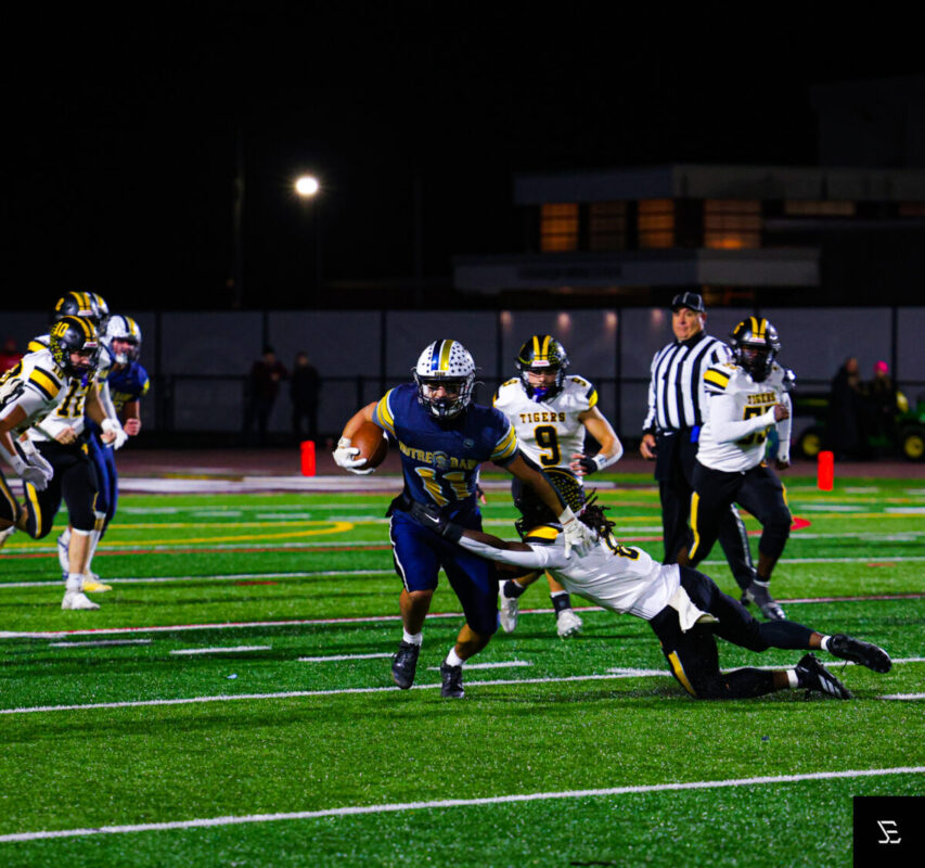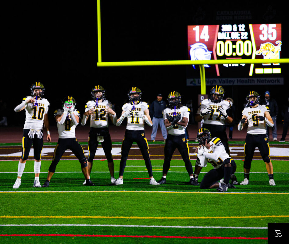 The Northwestern Lehigh Tigers defeat the Notre Dame-Green Pond Crusaders 35-14 in the District XII 3A Championship game. The Tigers had a hot start in the first half, up 21-7, but as soon as the second half started Notre Dame started to find their way and scored a touchdown to make it a one possession game. With a few back and forth drives of no scores, the Tigers started to pull away late in the end. The Crusaders get handed their first loss on the year, but Northwestern Lehigh will get to advance to State Playoffs with their unbeaten record and try to get a second consecutive state title this year.
