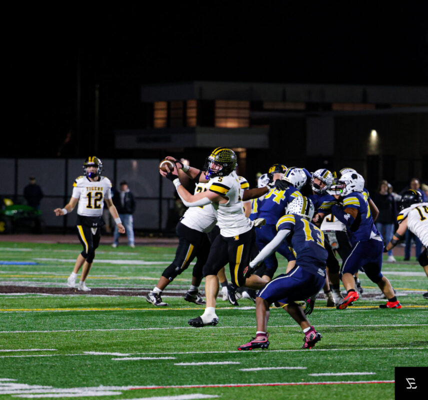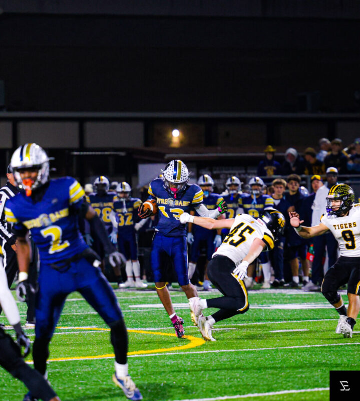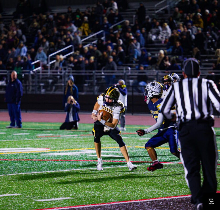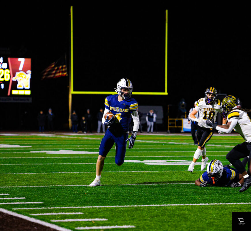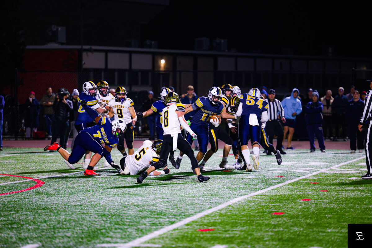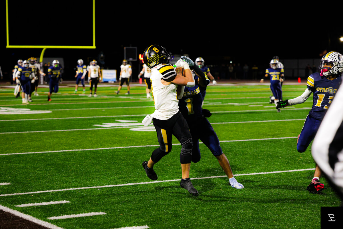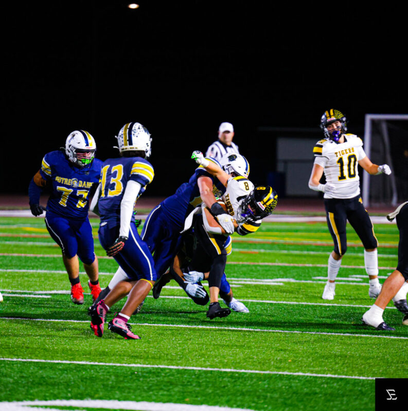The Northwestern Lehigh Tigers defeat the Notre Dame-Green Pond Crusaders 35-14 in the District XII 3A Championship game. The Tigers had a hot start in the first half, up 21-7, but as soon as the second half started Notre Dame started to find their way and scored a touchdown to make it a one possession game. With a few back and forth drives of no scores, the Tigers started to pull away late in the end. The Crusaders get handed their first loss on the year, but Northwestern Lehigh will get to advance to State Playoffs with their unbeaten record and try to get a second consecutive state title this year.