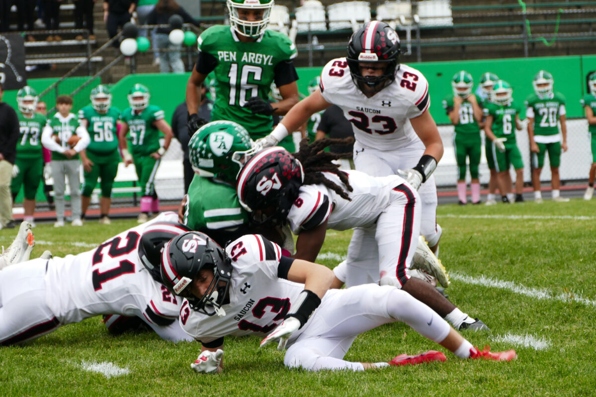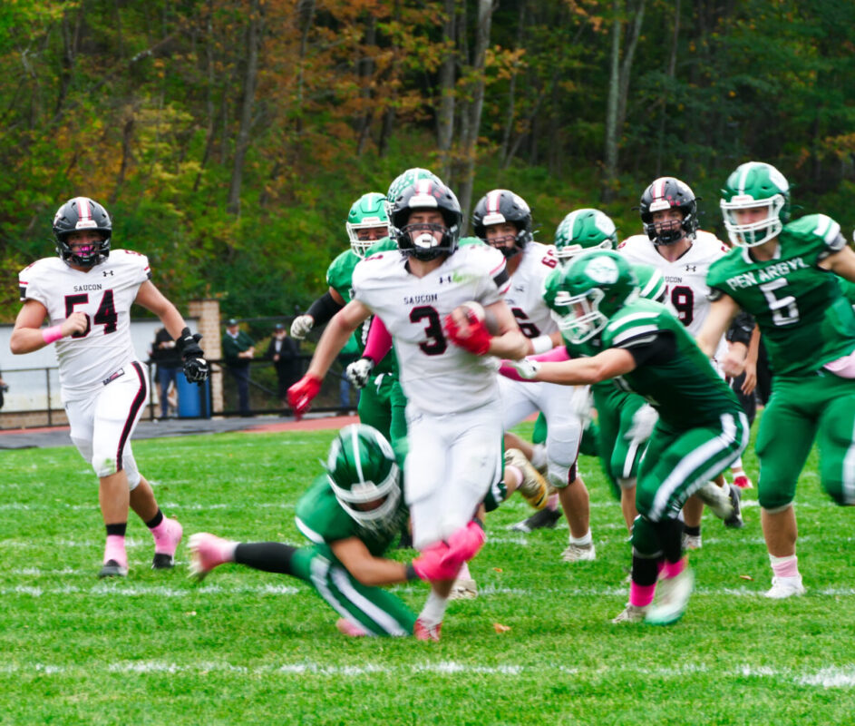 Saucon Valley forces 5 turnovers, pulls away late and emerges victorious over Pen Argyl in hard fought defensive battle 24-7. Enjoy the gallery below.