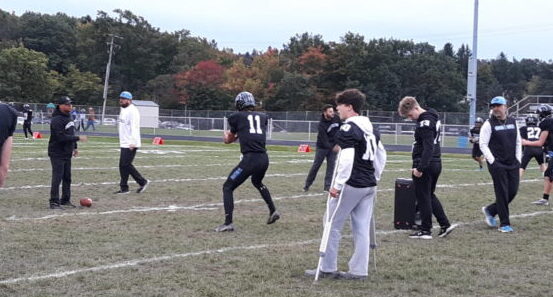 With the game on the line and Penn Cambria clinging to a tenuous 27-20 lead, the Panther defense forced a Bedford punt that pinned the home team deep in their own territory at the ten and 6:11 left on the clock. But a 17-yard pass by Harrold to Vinny Chirdon, a 14-yard run by Harrold, and a 32-yard run by Grove took the Panthers out of danger and into the Bisons’ real estate. Grove also had runs of 6, 7, and 7 yards in that drive. Penn Cambria did not score, but they took over four minutes off the clock and gave Bedford, a team that likes to run, the ball back with under two minutes to go and practically the length of the field, 94 yards, to traverse to possibly tie the game.