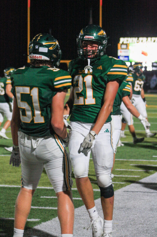 Penn-Trafford flexed its kicking power, making all extra points with three different kickers. Sophomore Jack Miller kicked the first three, senior Evan Sadler made the next two, followed by junior Logan Hunter kicking the final one.