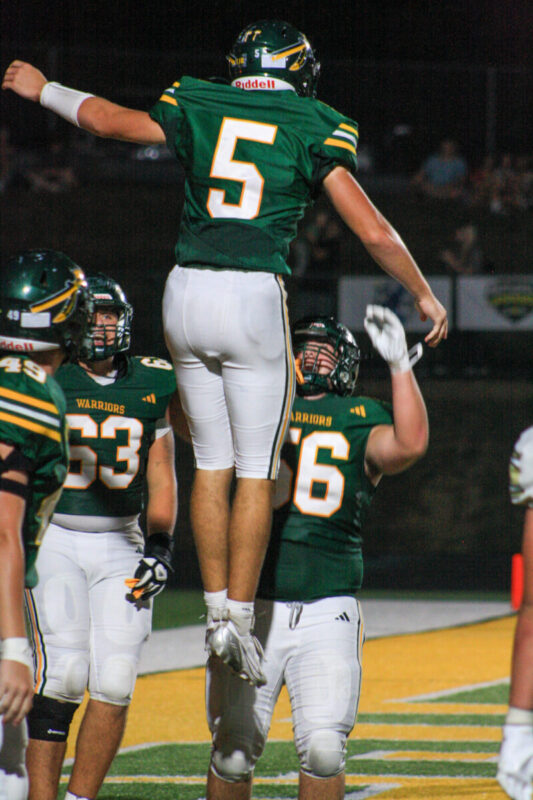 Sophomore quarterback Cody Yacamelli ran in a 4-yard touchdown, boosting the Warriors to 14-0 with six minutes left in the quarter. Yacamelli and senior Nate Desmond switched throughout the game as quarterback.