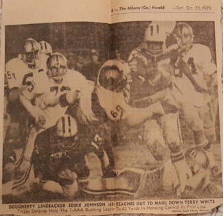 Dougherty’s coach, Luther Welsh, said after the game that his team was fired up because reportedly Central had sent the team candy suckers and the coaches baby rattles during the week leading up to the game. Donald Laster, Dougherty’s 6’5” tight end, who caught a touchdown pass in the game went on to play college ball at Tennessee State. He was drafted by the Washington Redskins in the 13th round and played on their 1982 Super Bowl Championship team when they beat Miami. He also played with Detroit in 1984 to end his brief NFL career.