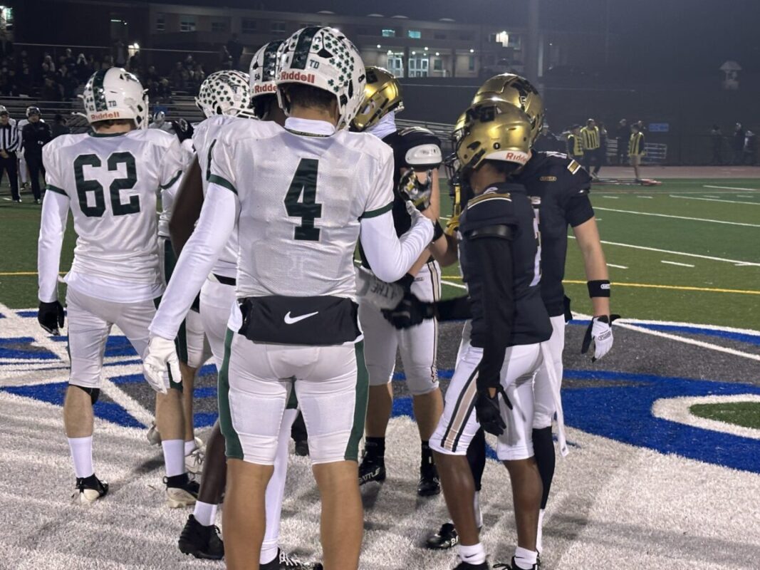 After trailing most of the game, the Trinity Shamrocks are moving on in the State Playoffs after an improbable come from behind victory in the waning minutes of the game. After falling behind 16-7 at half, Trinity rallied in the 2nd half, outscoring Neumann-Goretti 19-6. The late game heroics were powered by their Sr. QB, Mason Boyer, who impacted the game with both his arm and his legs, as he had a rushing TD and passing TD to close out the comeback victory, as well as another rushing TD early on. He also had a clutch TD catch from his Sr. WR, Keyon Nimmons to pull within 2 before the final comeback drive. Trinity’s experienced senior players proved their worth and will be a tough out for whoever they face next.