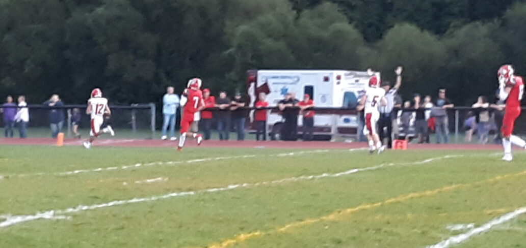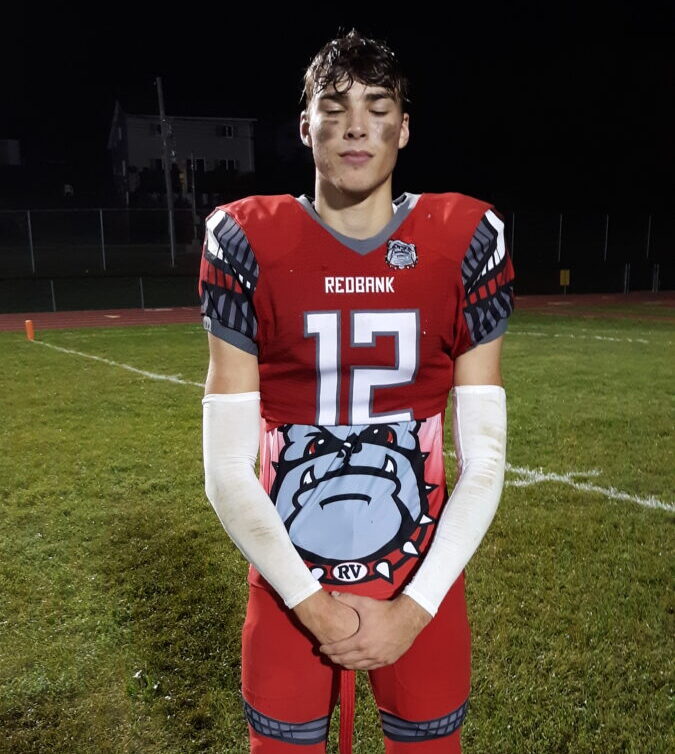 The third quarter saw Redbank regain their two-score advantage, only to have Punxsy cut the margin to 35-27 by the end of the quarter. Redbank posted a couple of scores in the fourth to pull away thanks to Wagner’s consistent play. Coach Gold said, “Last year we had a brake on Braylon because we had no other quarterback. So, what you see this year with Braylon and the RPOs is what makes Braylon dangerous.” In honor of Mason Martin, the Karns City quarterback, who was critically hurt last week against Redbank, Wagner donned the #2 jersey which is Martin’s number.